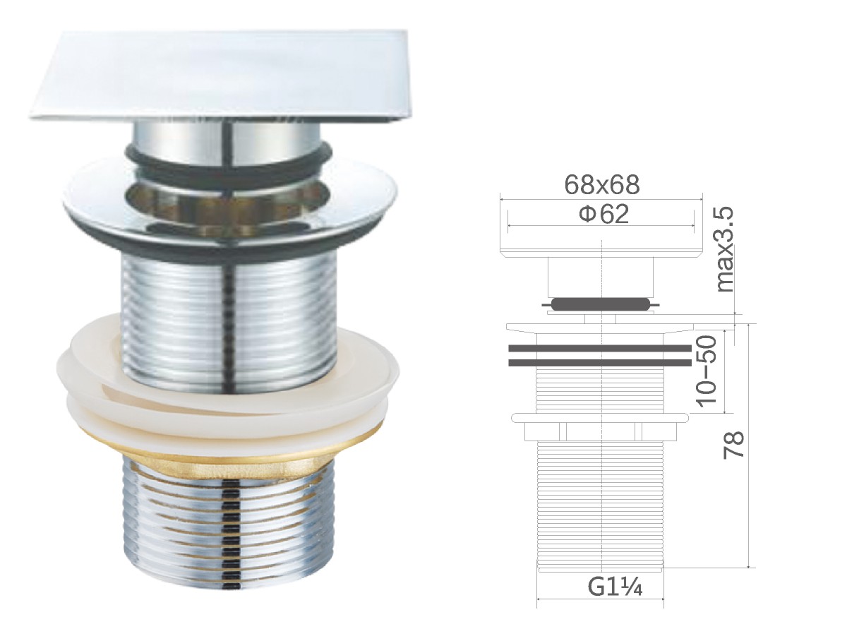 مياه النحاس لحوض الغسيل العام 1 1/4بوصة غطاء ثابت ليس clic-clac