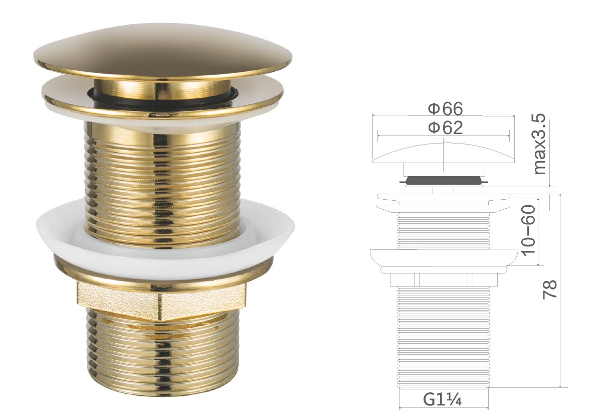 مياه النحاس لحوض الغسيل العام 1 1/4بوصة غطاء ثابت ليس clic-clac