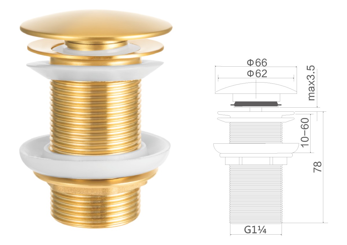 مياه النحاس لحوض الغسيل العام 1 1/4بوصة غطاء ثابت ليس clic-clac