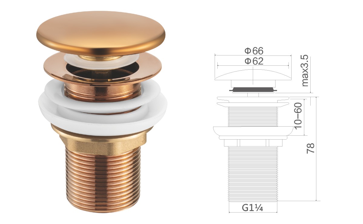 مياه النحاس لحوض الغسيل العام 1 1/4بوصة غطاء ثابت ليس clic-clac