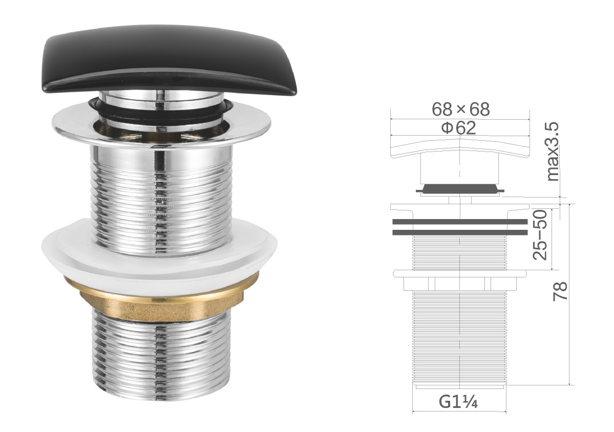 مياه النحاس لحوض الغسيل العام 1 1/4بوصة غطاء ثابت ليس clic-clac