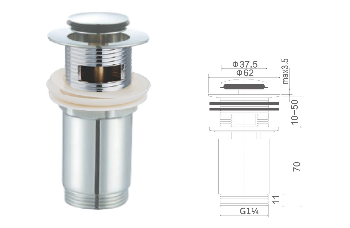 مياه النحاس لحوض الغسيل العام 1 1/4بوصة غطاء ثابت ليس clic-clac