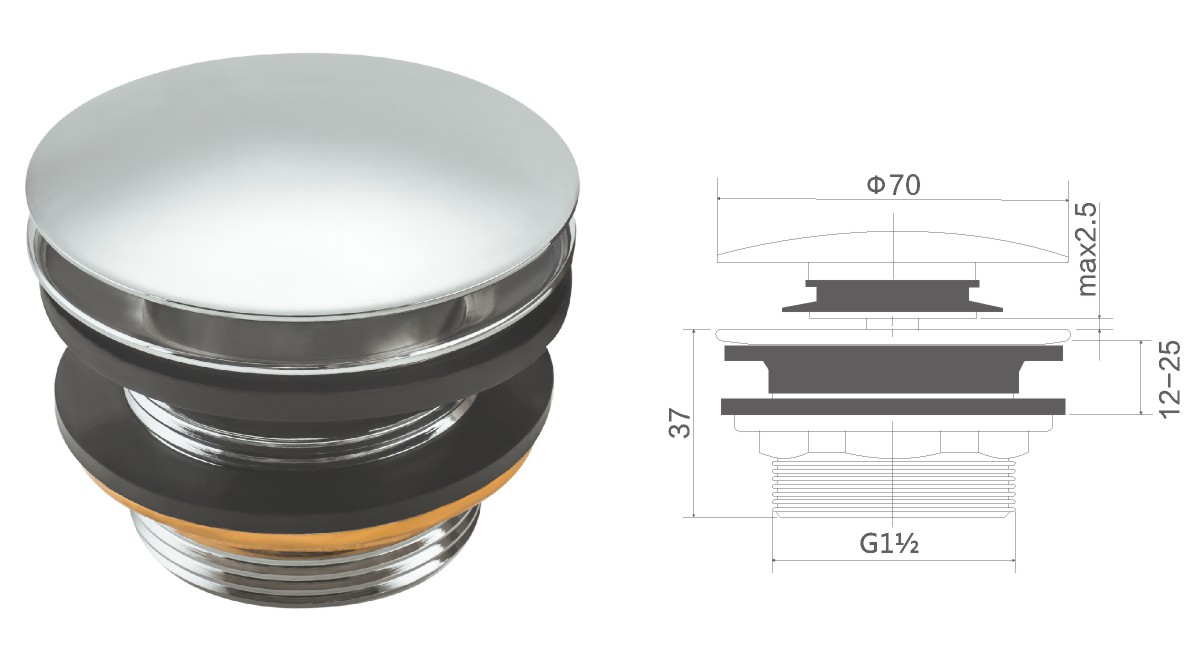 مياه النحاس لحوض الغسيل العام 1 1/4بوصة غطاء ثابت ليس clic-clac