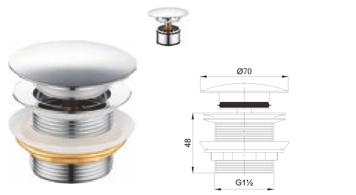 مياه النحاس لحوض الغسيل العام 1 1/4بوصة غطاء ثابت ليس clic-clac