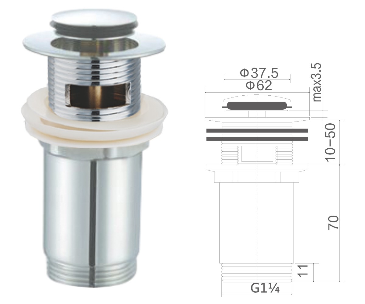 مياه النحاس لحوض الغسيل العام 1 1/4بوصة غطاء ثابت ليس clic-clac