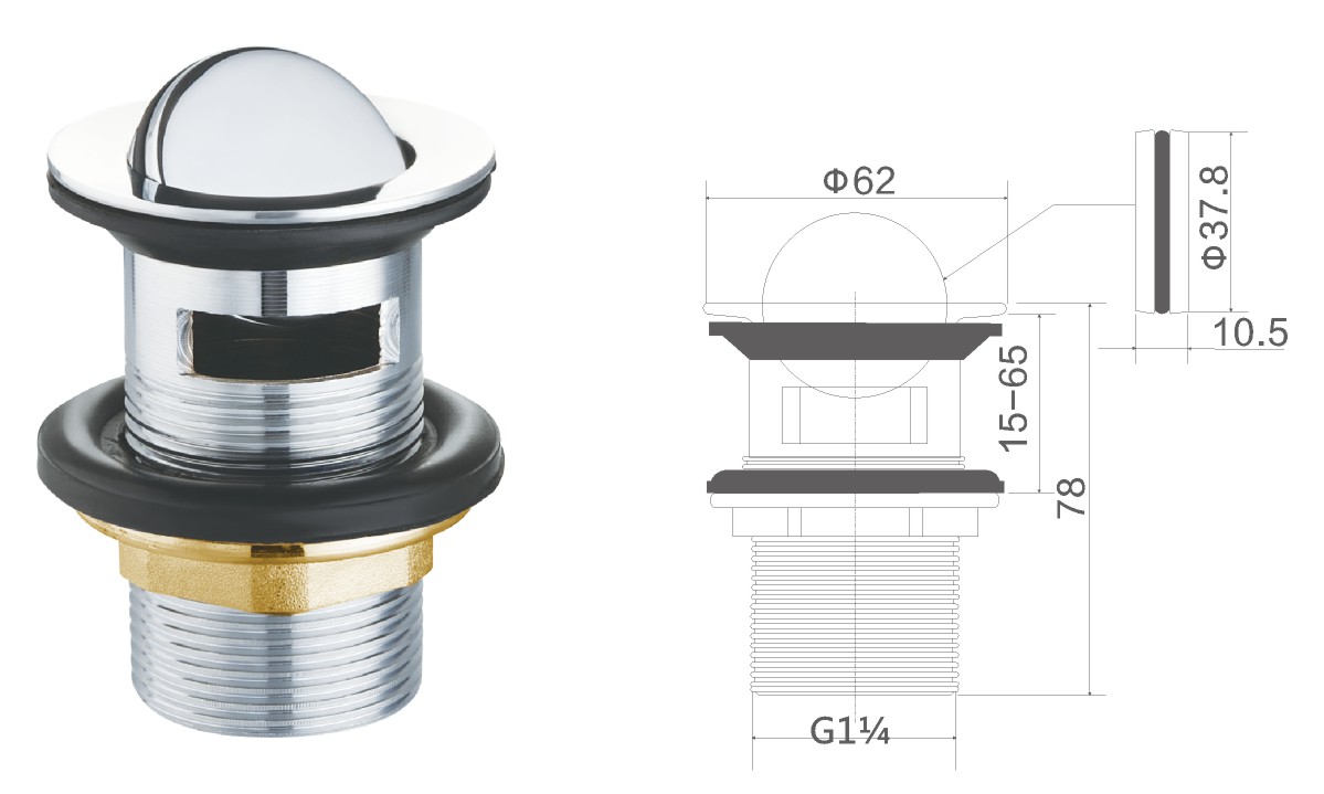 مياه النحاس لحوض الغسيل العام 1 1/4بوصة غطاء ثابت ليس clic-clac