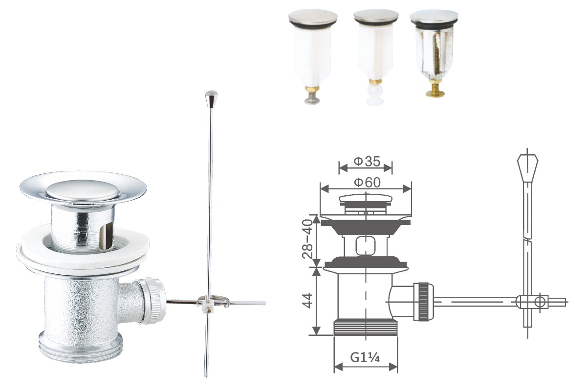 مياه الفولاذ المقاوم للصدأ لحوض الغسيل 1 1/4بوصة clic-clac