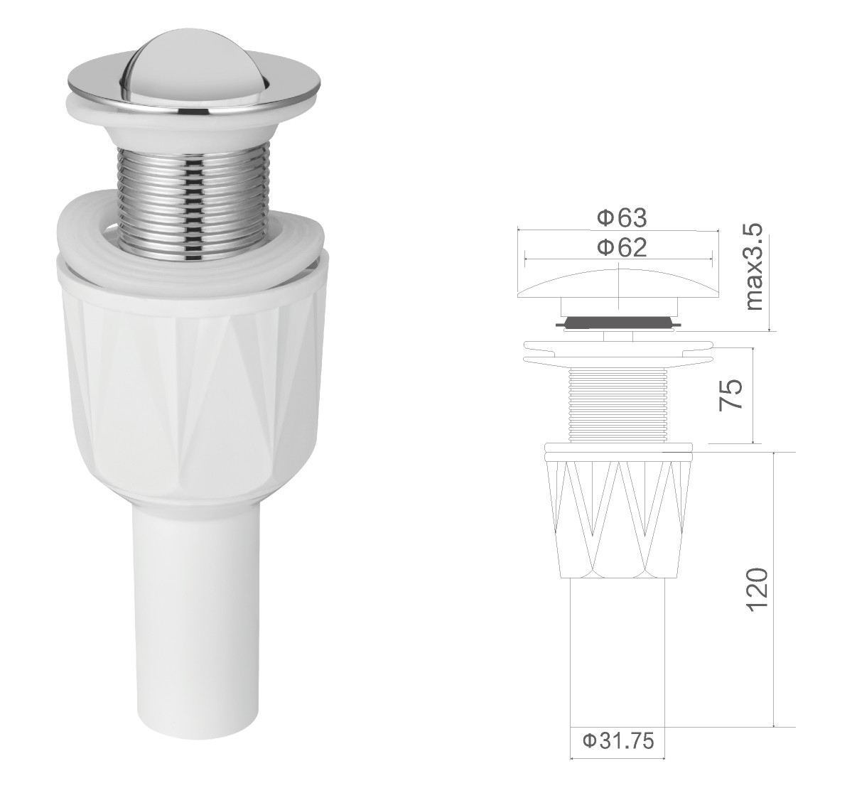 مياه الفولاذ المقاوم للصدأ لحوض الغسيل 1 1/4بوصة clic-clac
