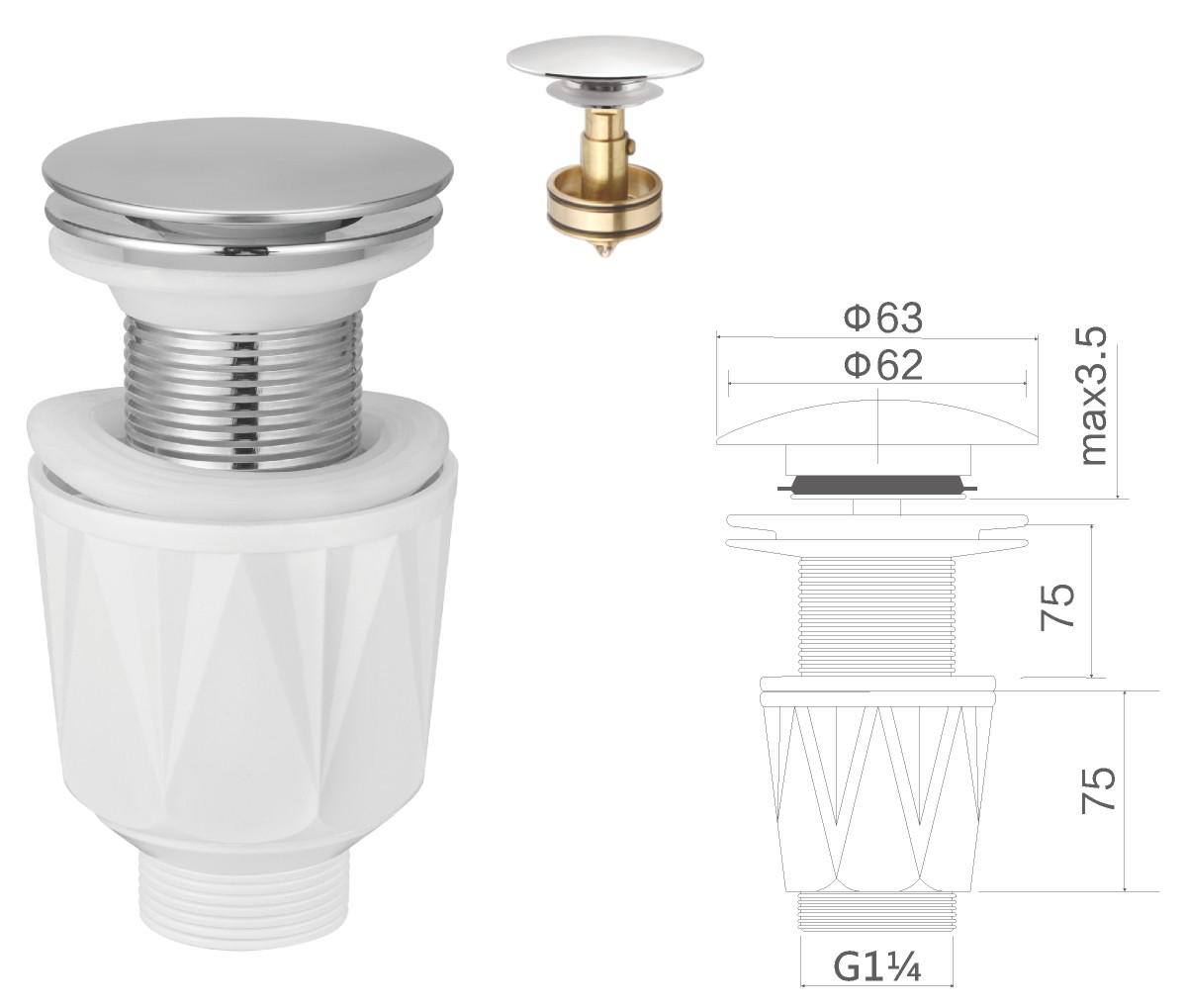 مياه الفولاذ المقاوم للصدأ لحوض الغسيل 1 1/4بوصة clic-clac