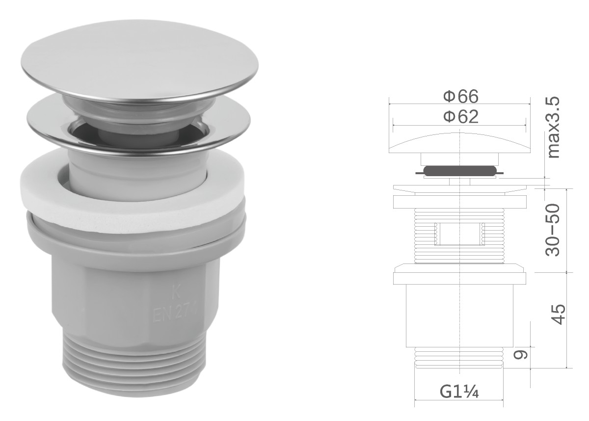 مياه الفولاذ المقاوم للصدأ لحوض الغسيل 1 1/4بوصة clic-clac