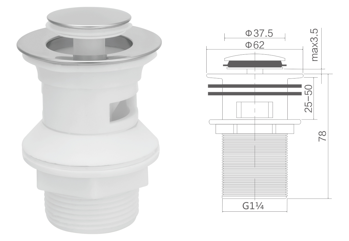 مياه الفولاذ المقاوم للصدأ لحوض الغسيل 1 1/4بوصة clic-clac