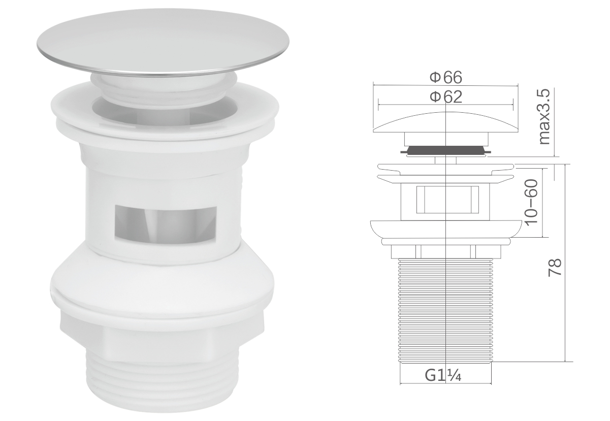 مياه الفولاذ المقاوم للصدأ لحوض الغسيل 1 1/4بوصة clic-clac