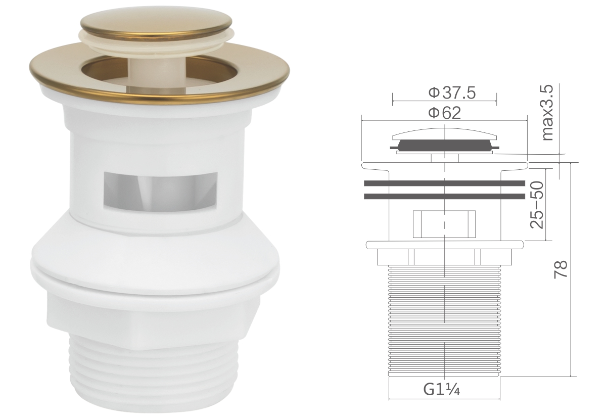 مياه الفولاذ المقاوم للصدأ لحوض الغسيل 1 1/4بوصة clic-clac