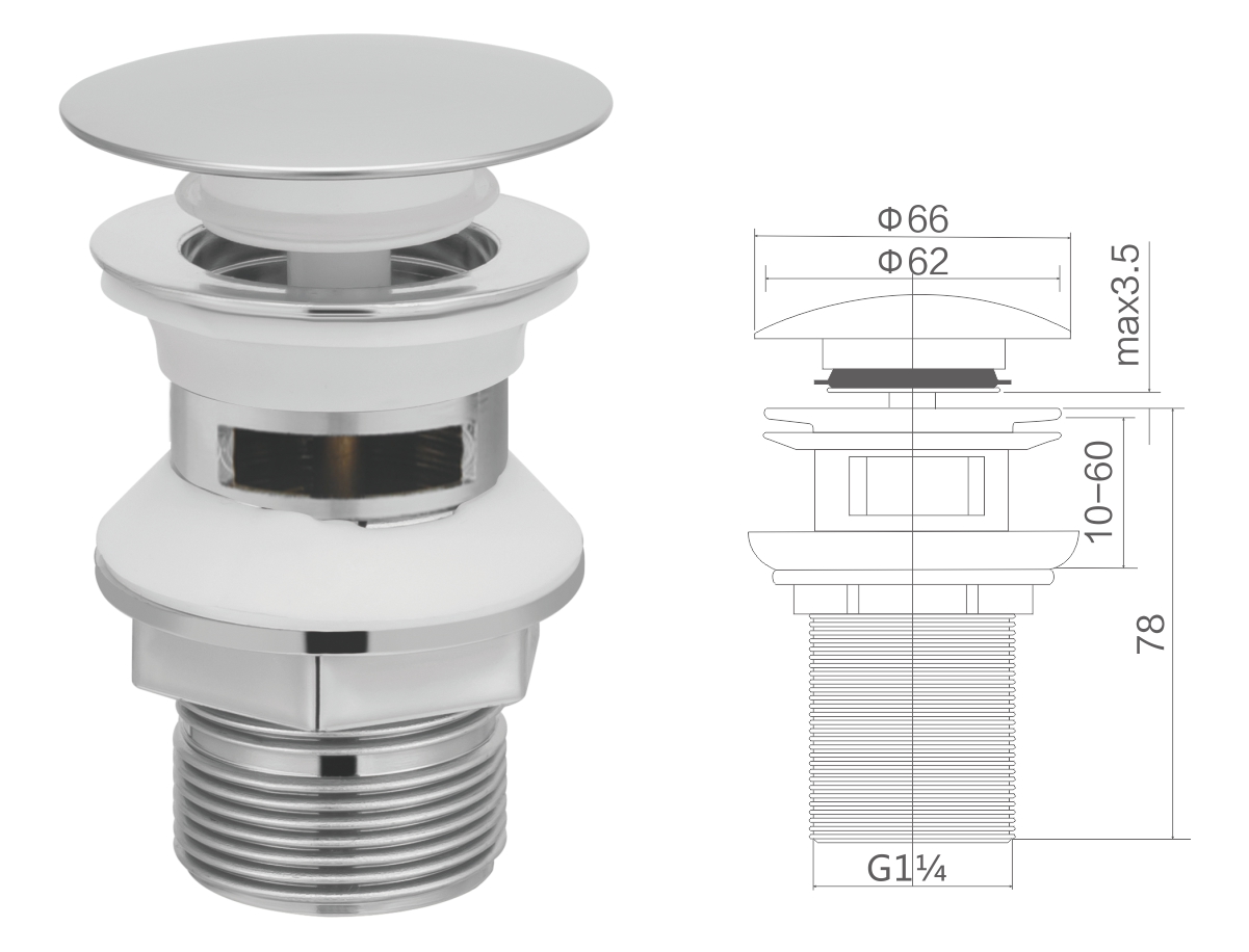 مياه الفولاذ المقاوم للصدأ لحوض الغسيل 1 1/4بوصة clic-clac