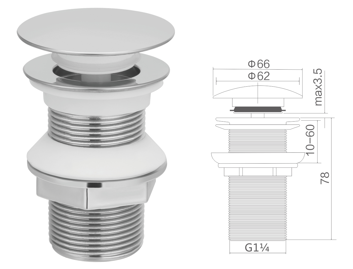 مياه الفولاذ المقاوم للصدأ لحوض الغسيل 1 1/4بوصة clic-clac