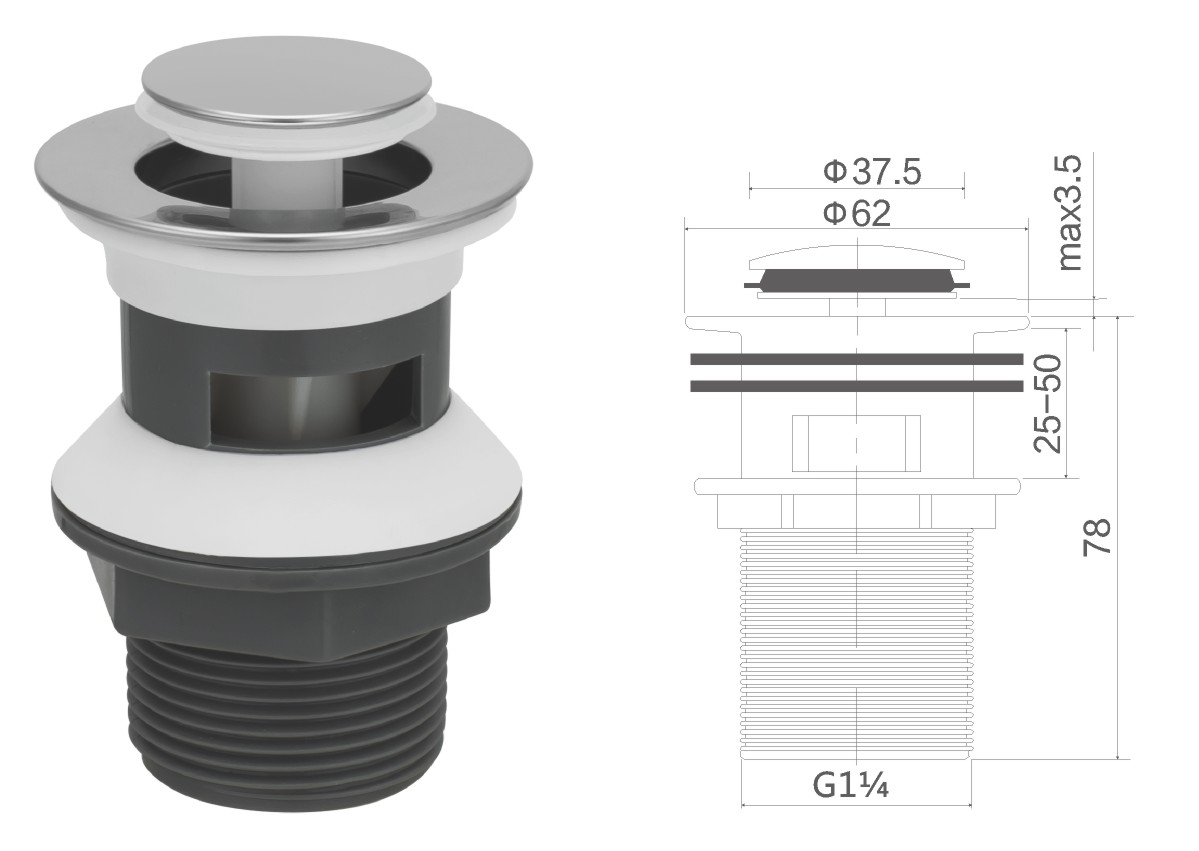 مياه الفولاذ المقاوم للصدأ لحوض الغسيل 1 1/4بوصة clic-clac