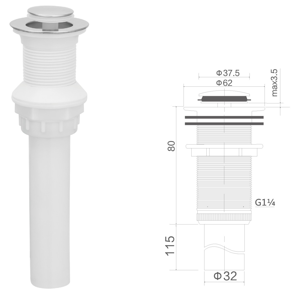 مياه الفولاذ المقاوم للصدأ لحوض الغسيل 1 1/4بوصة clic-clac