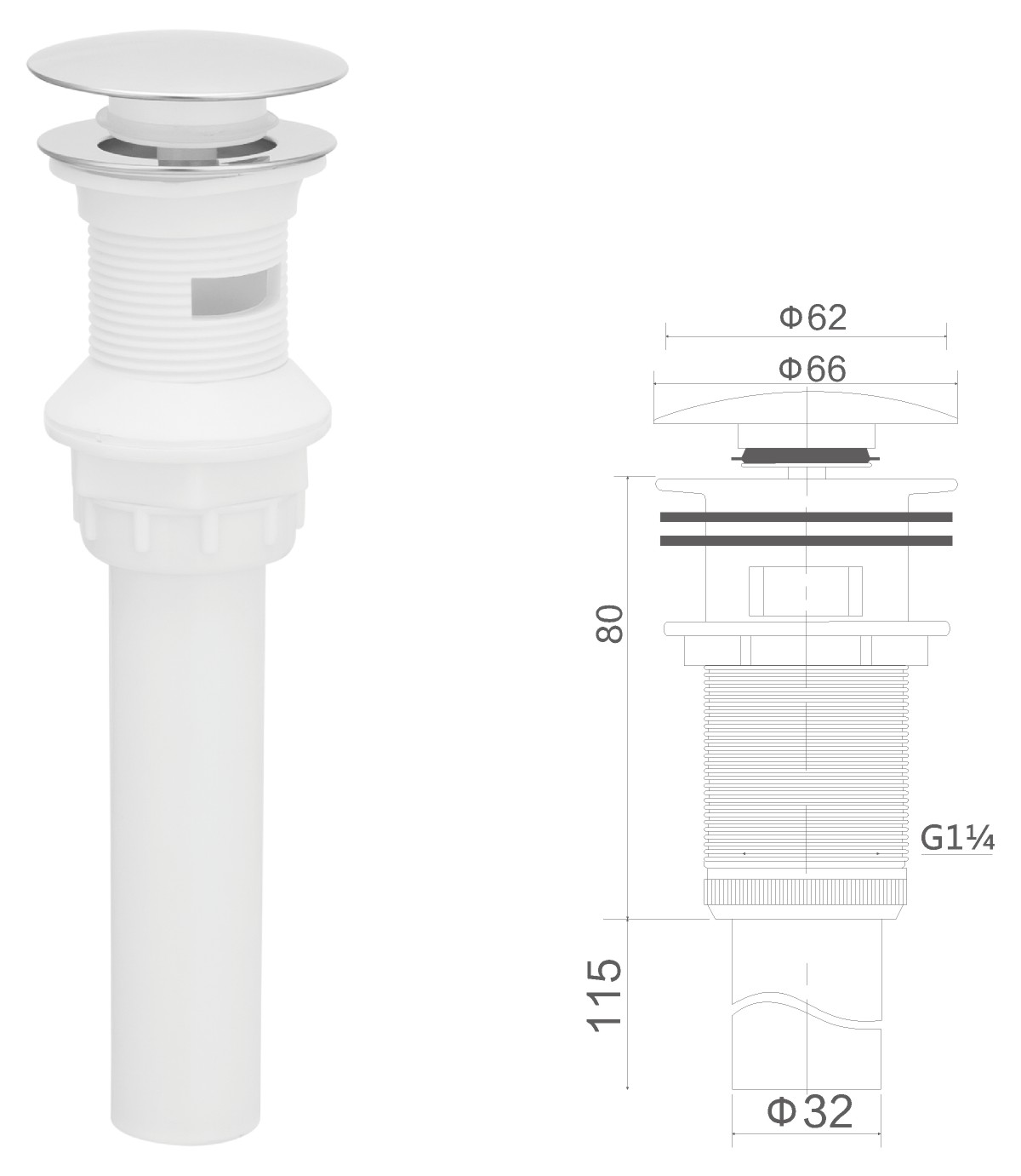 مياه الفولاذ المقاوم للصدأ لحوض الغسيل 1 1/4بوصة clic-clac