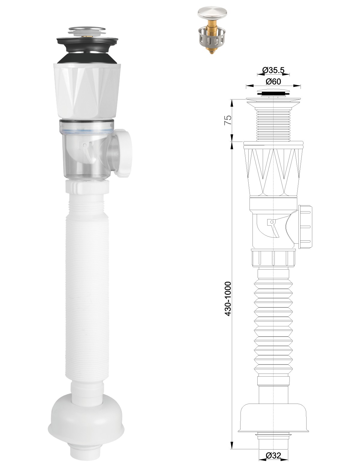 مياه الفولاذ المقاوم للصدأ لحوض الغسيل 1 1/4بوصة clic-clac