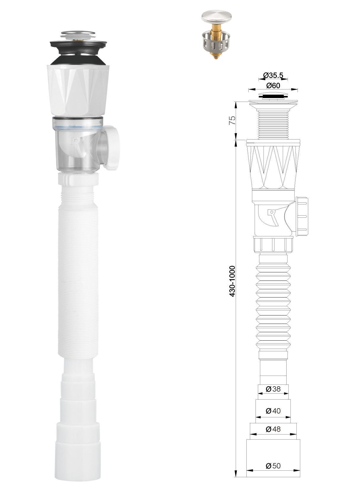 مياه الفولاذ المقاوم للصدأ لحوض الغسيل 1 1/4بوصة clic-clac