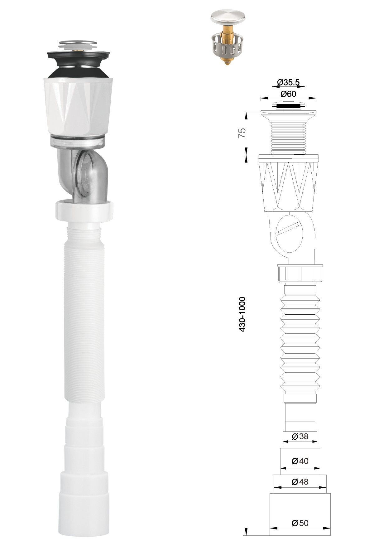 It can be used with or without an overflow basin.