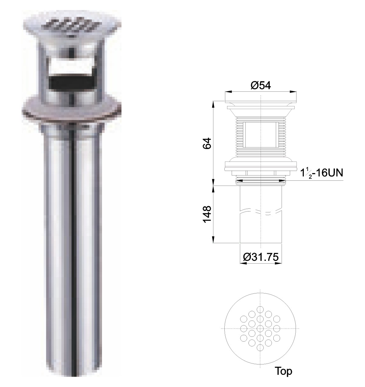مياه النحاس لحوض الغسيل العام 1 1/4بوصة غطاء ثابت ليس clic-clac