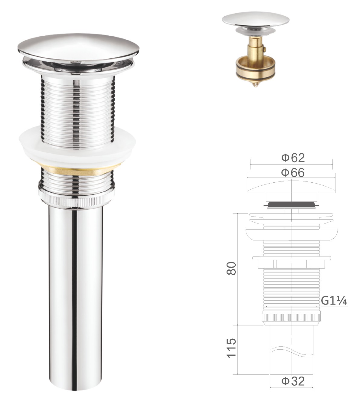 مياه الفولاذ المقاوم للصدأ لحوض الغسيل 1 1/4بوصة clic-clac