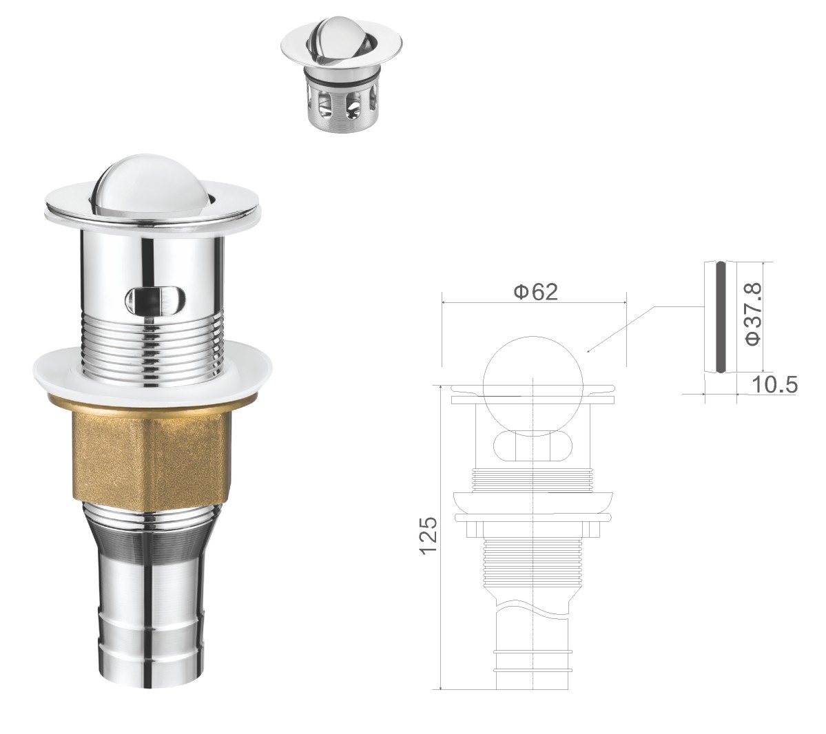 مياه النحاس لحوض الغسيل العام 1 1/4بوصة غطاء ثابت ليس clic-clac