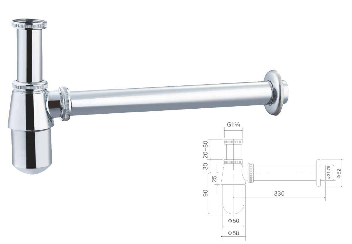 الفولاذ المقاوم للصدأ 304 سيفون 1 1/4بوصة