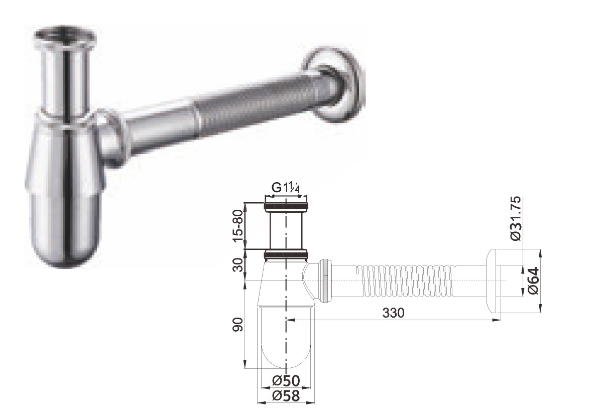 الفولاذ المقاوم للصدأ 304 سيفون 1 1/4بوصة