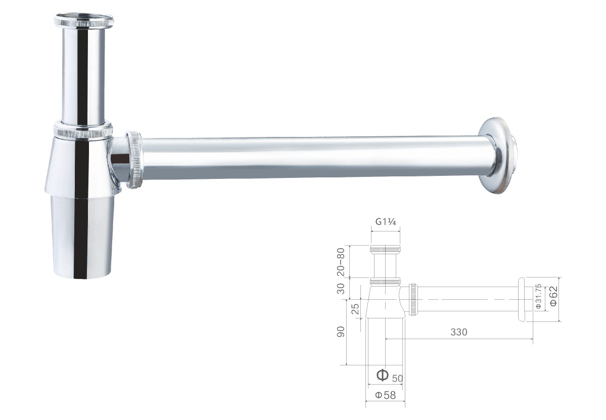 الفولاذ المقاوم للصدأ 304 سيفون 1 1/4بوصة