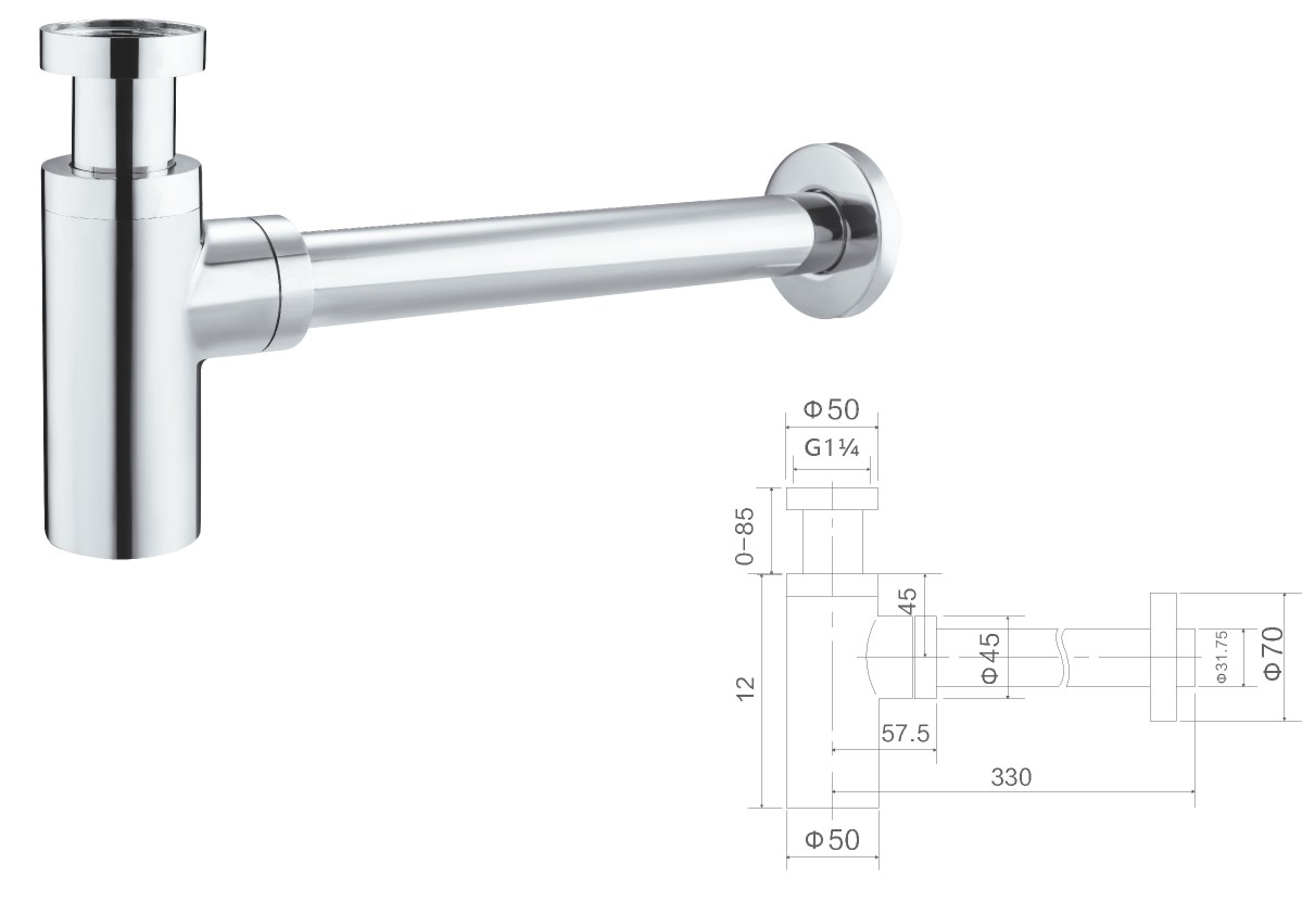 الفولاذ المقاوم للصدأ 304 سيفون 1 1/4بوصة