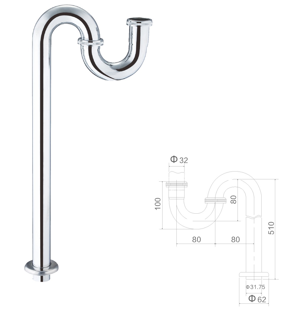الفولاذ المقاوم للصدأ 304 سيفون 1 1/4بوصة